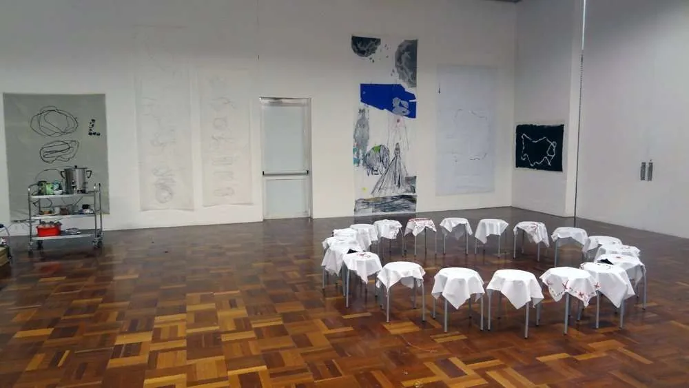 In 2014 Alice Kettle and visual anthropologist Amanda Ravetz undertook a research residency at the ANU art school in Australia. During the residency, they developed their own shared ‘making space’ using drawing as a shared language. They reflected on the themes of gesture, reverie and enchantment, which culminated in a three-day workshop.